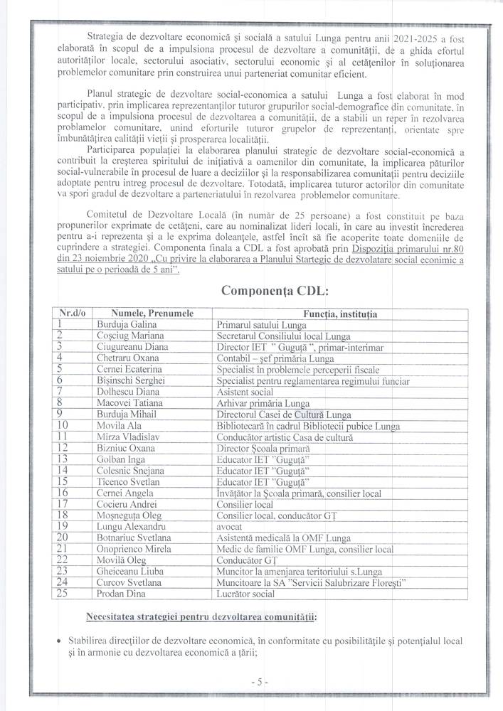 Decizia nr. 8.10 Cu privire la aprobarea planului de dezvoltare social-economică a s.Lunga pentru anii 2021-2025
