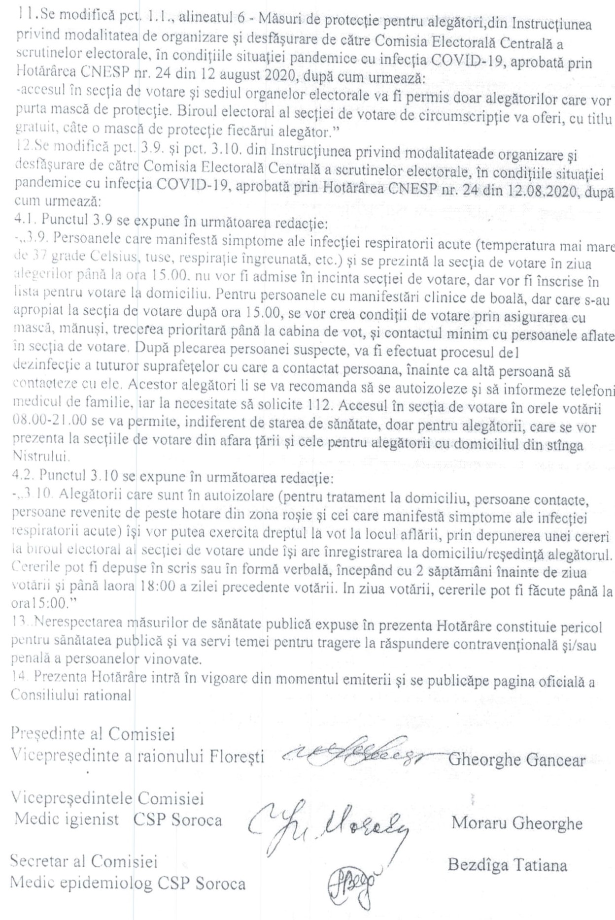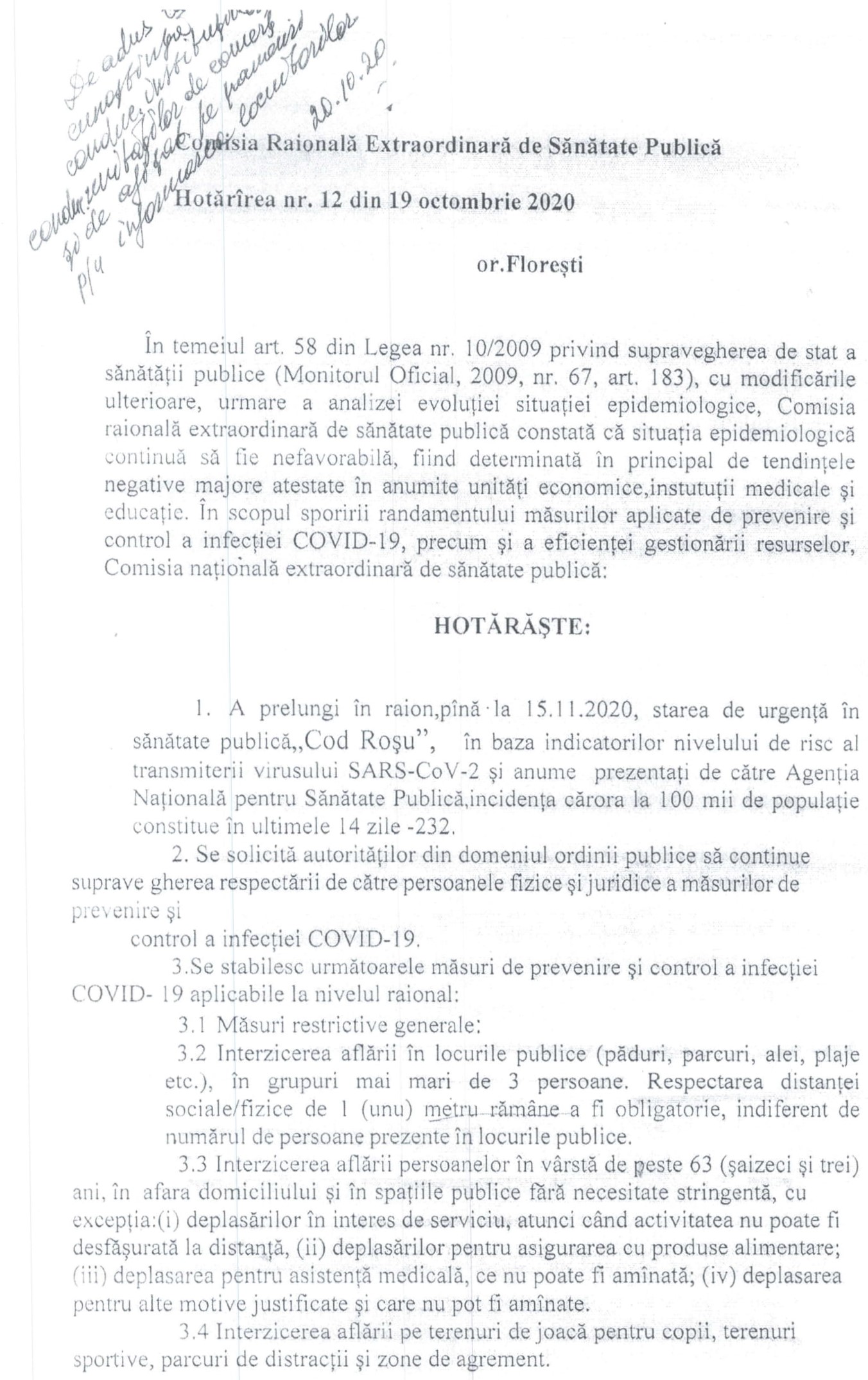 Hotărârea nr. 12 din 19.10.2020 a Comisiei Raionale de Sănătate Publică Florești