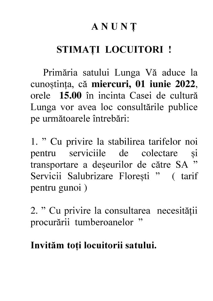 Anunțuri consultări publice