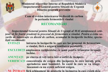Inspectoratul General pentru Situații de Urgență atrage atenția: În fiecare toamnă, odată cu începerea procesului de fermentare a mustului, crește riscul de intoxicații cu dioxid de carbon (CO₂) – un gaz rezultat natural în timpul fermentației vinului, dar extrem de periculos în spații închise. Inspectoratul […]